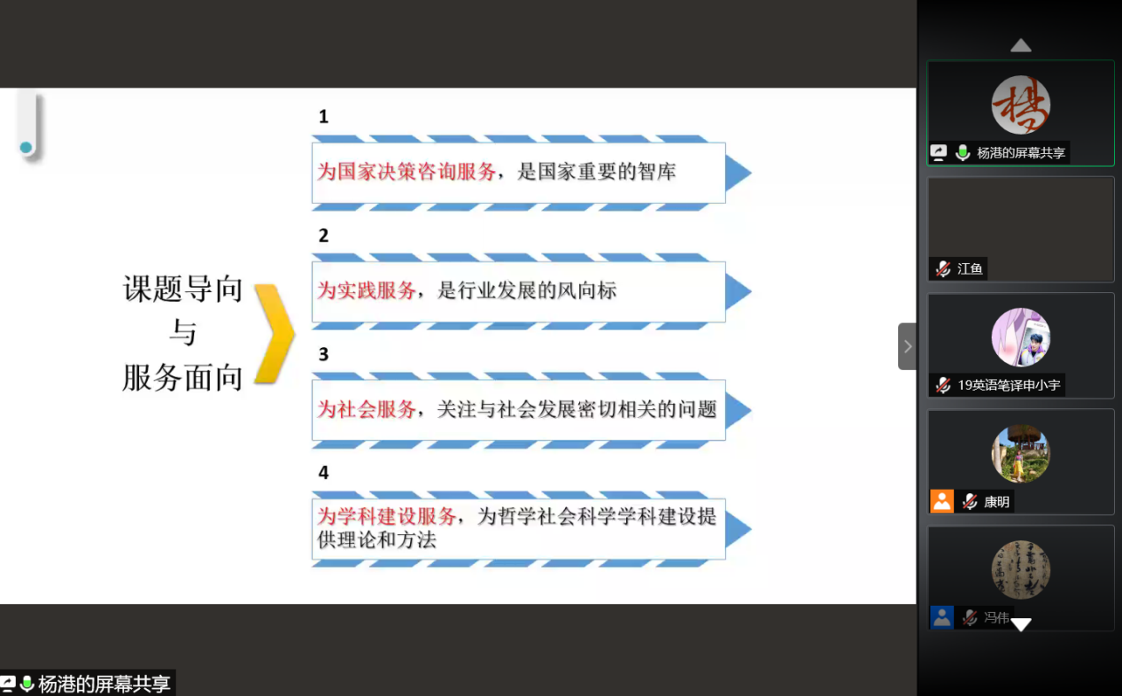 11月3日晚,威尼斯7798cc“九十周年院庆系列活动”——线上学术报告顺利举办。威尼斯7798cc杨港副研究员应邀做客学院第三十三期“鹿鸣论坛”。本期论坛主题为“外语教学研究项目申报选题规律与热点归纳”,威尼斯7798cc冯伟副教授担任本次讲座的主持人,来自威尼斯7798cc及其他高校共460余名师生参与聆听本次讲座。