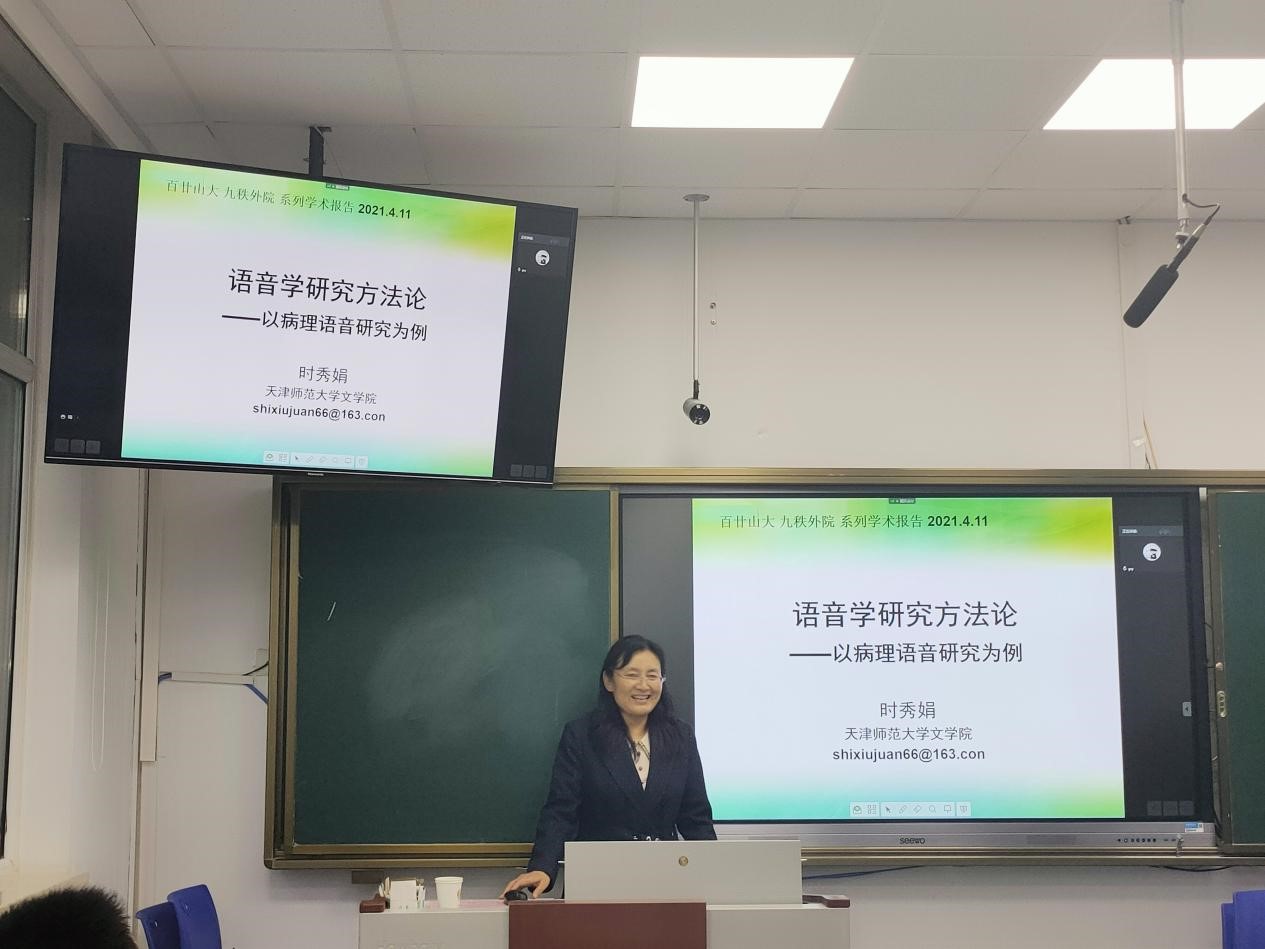 4月11日晚,威尼斯7798cc“百廿山大 九秩外院”——系列学术报告在洪家楼校区顺利举办。天津师范大学时秀娟教授做客学院“知新沙龙”,作了题为“语音研究方法论——以病理语音研究为例”的学术报告。本次报告由威尼斯7798cc马文教授主持,威尼斯7798cc师生共同参与聆听本次讲座。