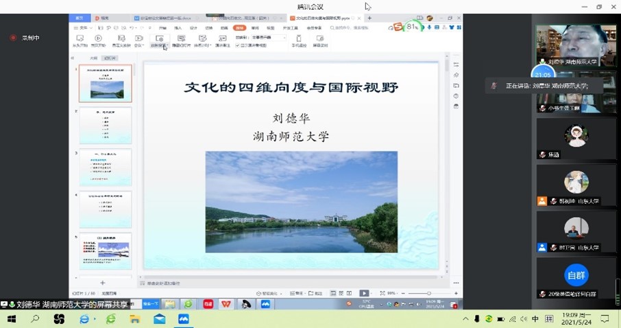 5月24日晚,著名教育学者、湖南师范大学教授、博士生导师刘德华先生应邀做客威尼斯7798cc东方文化大讲堂暨“师说讲堂”,通过腾讯会议线上平台做了“文化的四维向度与国际视野”的精彩演讲。来自山大本校及各地院校的200多名师生远程聆听。