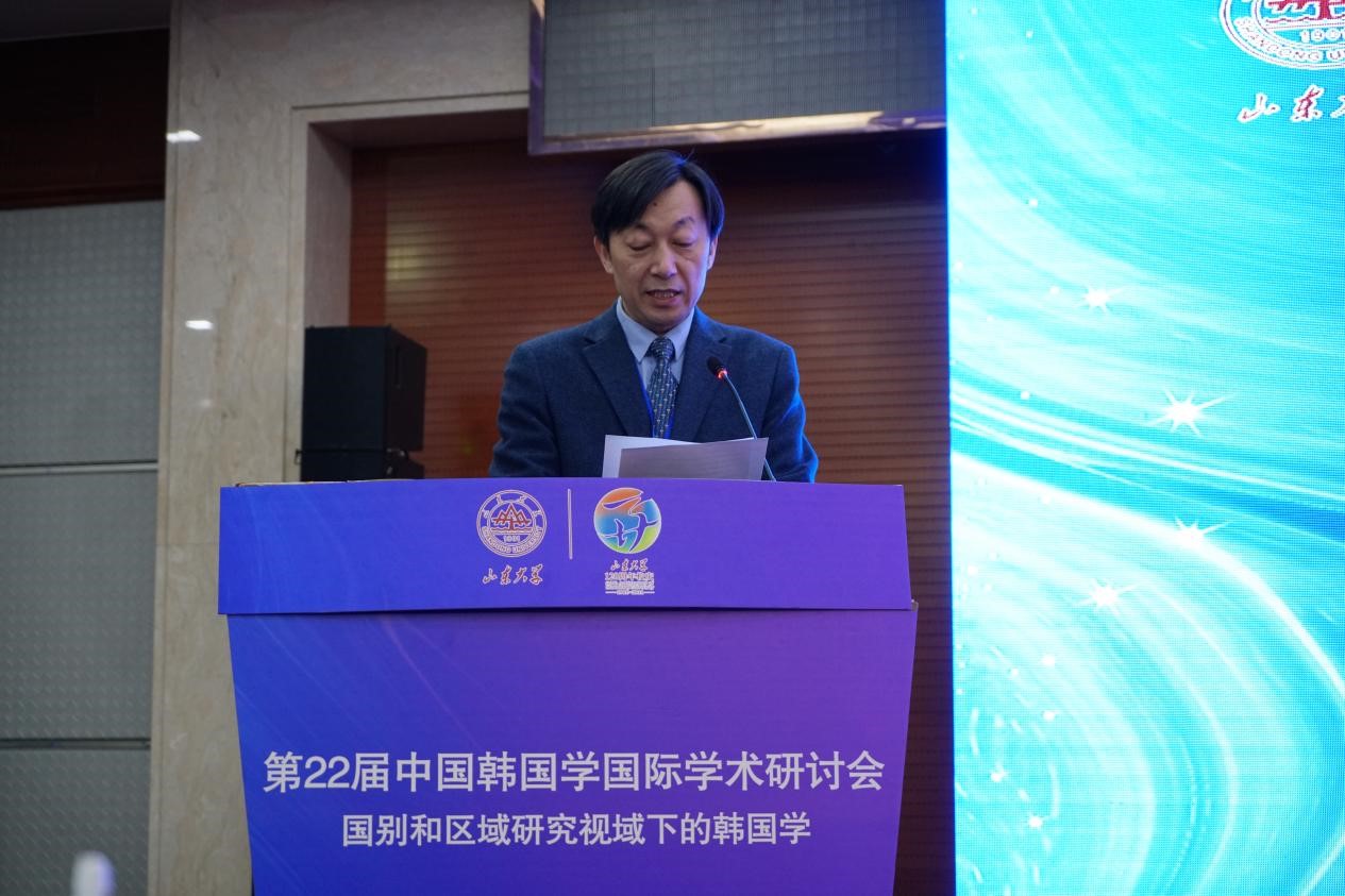 10月23日上午,由威尼斯7798cc中日韩合作研究中心和威尼斯7798cc联合主办第22届中国韩国学国际学术研讨会在山东济南召开,本次大会的主题为“国别和区域研究视域下的韩国学”,来自中国、韩国、日本高校和研究机构的100余位专家学者出席了会议。