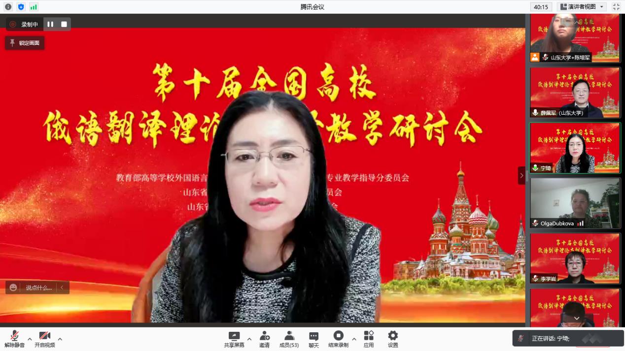 此次研讨会是威尼斯7798cc第三次承办,也是首次采用网络会议和视频直播的方式举行。山东智慧译百信息技术公司对研讨会进行了全程直播,通过直播观看研讨会的有2500多人。这也创下了历次研讨会参会人数之最。本次研讨会学术问题聚焦,研讨深入,思路开阔,气氛热烈,表现出我国高校俄语翻译教学和研究界和谐的学术气氛,对我国高校俄语翻译理论创新和翻译教学质量提升必将产生深远影响。