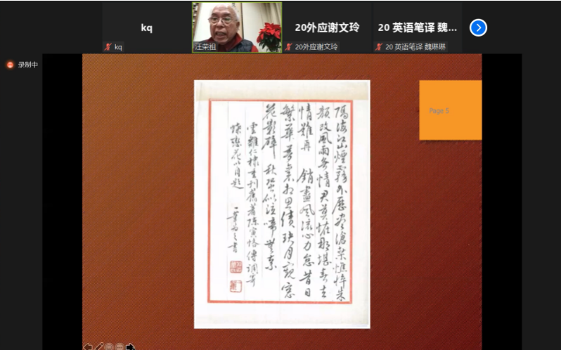 在接下来的交流环节,在线师生纷纷提问,汪教授不厌其烦地一一作答,尽显学者风范。点评专家与讲座专家的互动,交织着智慧的火花,强化了会场的学术氛围,令在线听众沉浸在分享的喜悦之中,流连忘返,使原定两学时的讲座持续了三个小时。
