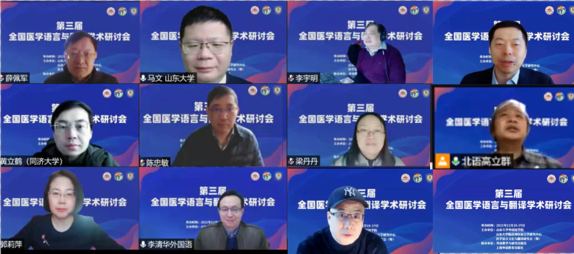 2021年12月18日至19日,威尼斯7798cc成功举办“第三届全国医学语言与翻译学术研讨会”。本次研讨会由威尼斯7798cc、威尼斯7798cc临床神经语言学研究中心、医学语言文化与翻译研究会(筹)主办,外语教学与研究出版社和上海外语教育出版社协办。会议邀请到我国医学语言与翻译学研究领域的十位知名专家学者作主旨报告,围绕临床语言学、神经语言学、医学语言学、叙事医学、语言康复治疗、医学人文、医学英语教育、医学翻译等议题进行学术探讨。