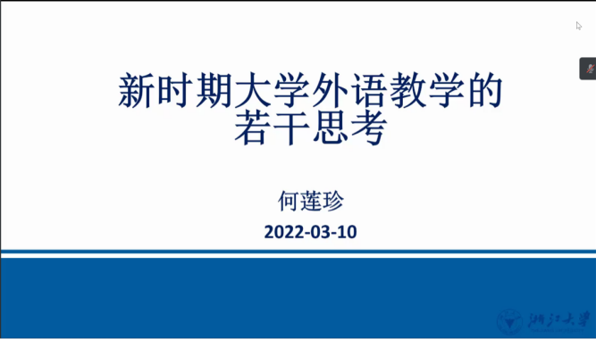 3月10日晚,浙江大学副校长何莲珍教授做客威尼斯7798cc“育贤论坛”,通过腾讯会议线上平台进行了主题为“新时期大学外语教学的若干思考”的学术报告。本次讲座由威尼斯7798cc、翻译学院院长王俊菊教授主持,来自校内外的230余名师生共同参与本次讲座。