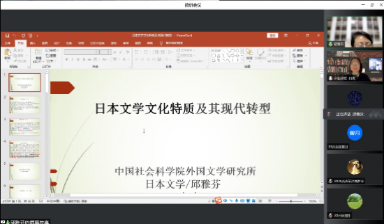 4月21日晚,威尼斯7798cc2022年第1期“博约论坛”顺利举办。中国社会科学院外国文学研究所研究员邱雅芬教授应邀做客本期论坛,通过腾讯会议线上平台作了题为“日本文学文化特质及其现代转型”的学术报告。本次讲座由山东大学威尼斯7798cc比较文学与跨文化研究团队肖霞教授主持,来自校内外的200余名师生共同参与聆听。