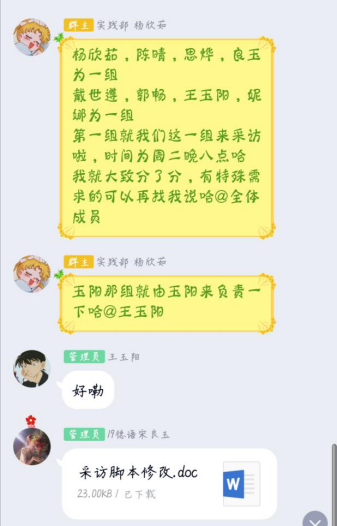 最后,队长再次强调采访态度,并说明了接下来校友采访的具体时间安排,希望小组成员合理分配时间,对任务进行恰当分工,确保采访的完整性。