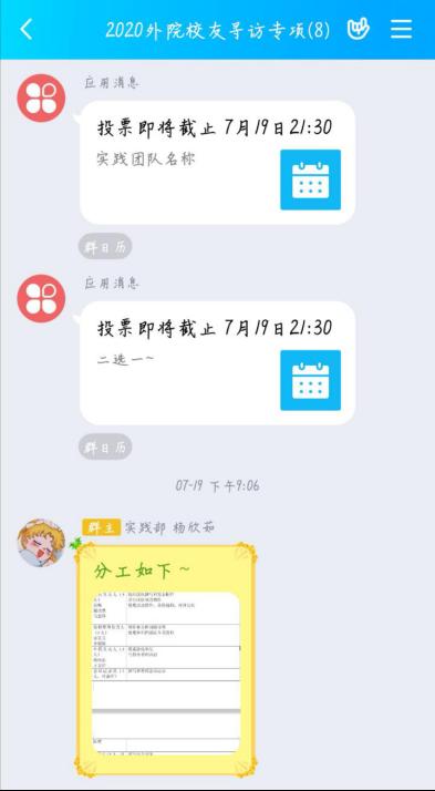 7月19日晚,为增进团队成员间的相互了解,合理分配实践工作任务,威尼斯7798cc“访贤思齐”校友寻访实践团队举行了首次线上见面会。本次会议由队长杨欣茹主持,队员陈晴、郭畅、戴世遵、王玉阳、马思烨、宋良玉、李妮娜积极参与。