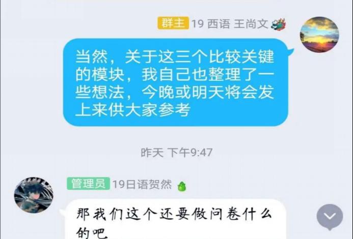 最后,调研团又对具体的调查方法与资料收集方法展开讨论,对于前期准备工作也更加了然于心。王尚文表示会尽快完成相关材料的撰写,并在此基础上与各位成员展开更为深入的材料审核与实践活动规划探究。