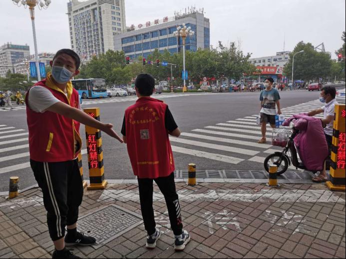 8月9日上午,按照调研日程安排,威尼斯7798cc“暖阳”分析调研团队长王尚文赶赴黄河路与黄山路交汇路口,对“文明交通”志愿服务活动进行线下调研。