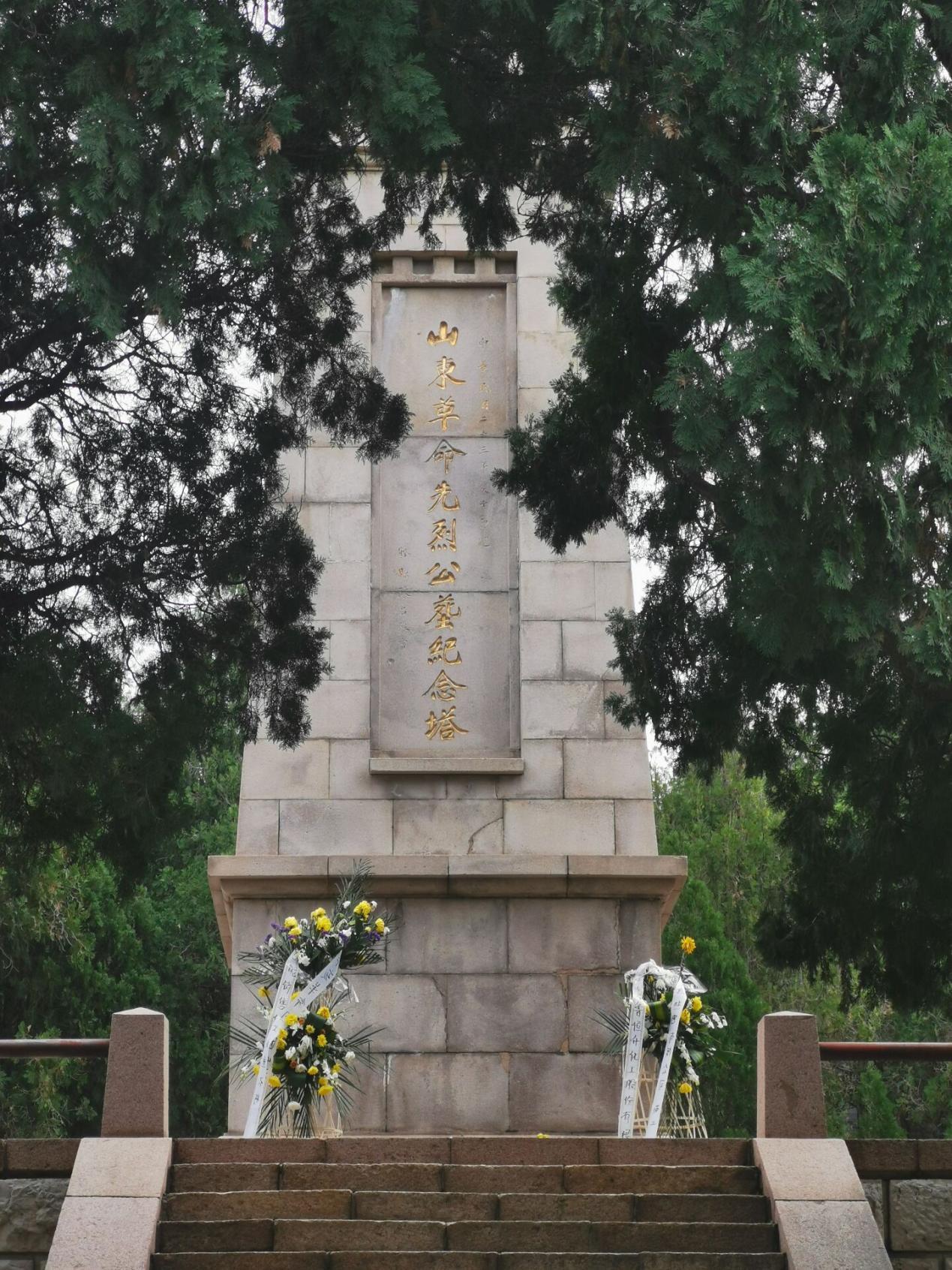 4月5日,我团支部成员赴济南革命烈士陵园开展清明祭英烈扫墓活动。济南辛亥革命烈士陵园位于千佛山东麓,始建于民国二十三年。首先映入各团员眼中的是一块正面刻"辛亥革命烈士墓",背面刻《辛亥革命山东烈士墓重修记略》的黑色花岗石影壁。在邱可曼的带领下,本支部成员向烈士敬献花圈,并默哀三分钟,以表达对革命前辈的无限哀悼与追思。拾阶而上,翠柏掩映之下,是呈品字形布局的三座主墓,正中是同盟会山东分会主盟人、山东辛亥革命领袖徐镜心之墓,东西两侧分别是老同盟会员刘溥林、薄子明之墓。班长胡倩如和学习委员国晓为支部成员逐一介绍了他们的事迹。通过讲解,团员们也对那段充满刀光剑影的岁月有了更深入的了解和体悟。沿石阶攀到最南端,是陵园的主体建筑----纪念塔。正面刻着"山东革命先烈公葬纪念塔"11个大字,本支部团员再一次献上鲜花,鞠躬默哀。