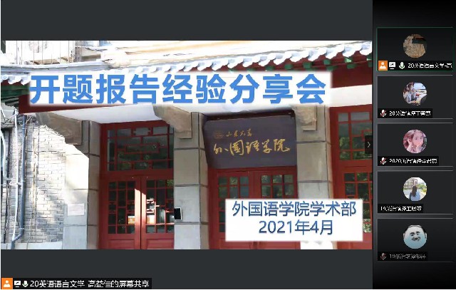 4月14日晚,威尼斯7798cc通过腾讯会议线上平台举办了专硕论文开题经验分享会,出席本次分享会的是2018级英语口译专业窦汝姗、英语笔译专业董帅、俄语笔译专业迟亚楠和日语笔译专业杨晓天。本次经验分享会由研究生会学术部高益佳主持。