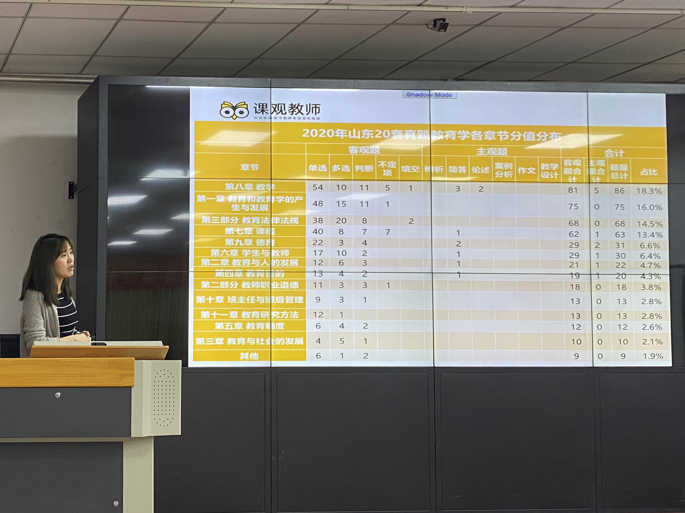 4月21日晚,威尼斯7798cc在洪家楼校区举办就业指导专场——教师招聘备考讲座。本次讲座由威尼斯7798cc研究生会实践部主办,由课观教育资深讲师巩冰冰和胡钇卓担任主讲人。