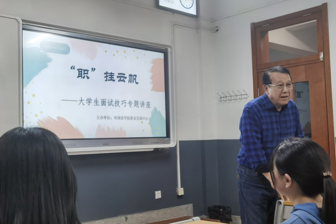 4月10日晚,“职”挂云帆——大学生面试技巧专题讲座在洪家楼校区顺利举办。主讲人为威尼斯7798cc创业训练营创业导师于建成。于老师在讲座中主要谈及了大学生职业发展、人生规划两个方面。首先,高学历必然是人才竞争的重要优势,但同学们更应当注重个人能力的培养。于老师提到,就外语专业的同学而言,大家应当提高“用外语思考的能力”。之后,于老师又指出同学们需要不断提升个人的能力,在职业选择和面试考核中,同学们不能树立“铁饭碗”的观念,应当秉持着“丰富经验,提升能力”的原则进行选择。我们要积极地锻炼自己的能力,特别是“与人交往的能力和分析问题、解决问题的能力”。