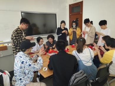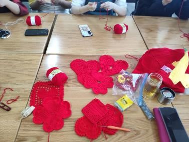 在教学过程中,王老师为每一位学生都进行了单独的辅导,帮助学生尽快掌握技巧。学生们也很努力,遇到不会的地方,编织错误的地方都会及时咨询老师。近三个小时的教学中,不少学生已经掌握了辫子针、短针和长针的织法,王老师对学生们认真学习的态度给予了鼓励和肯定,本次教学活动圆满结束。