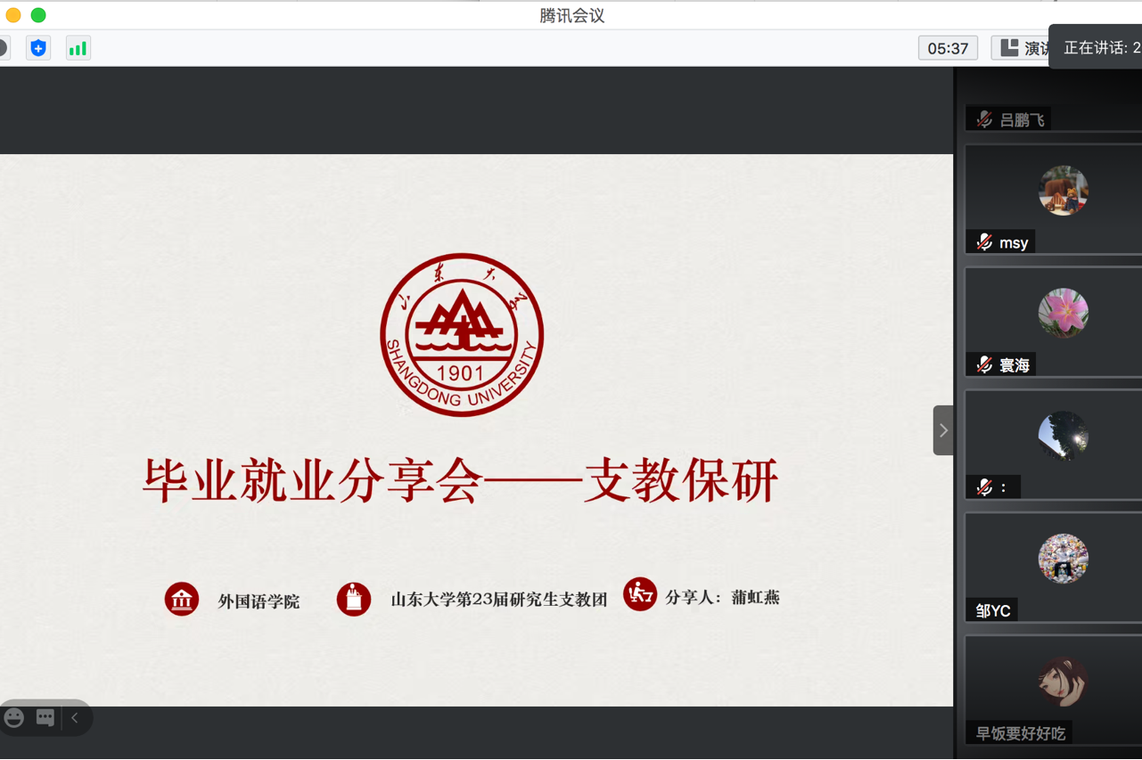 为了帮助威尼斯7798cc同学明确毕业去向,提高就业热情,5月28日晚,威尼斯官网举办了“学而有成 不负耕耘”2021年本科生毕业就业经验分享会的支教、保资线上专场。出席本次经验分享会的有吕鹏飞、王文卿、蒲虹燕三位优秀的学长学姐,分享会由2018级辅导员助理王怡宁主持。