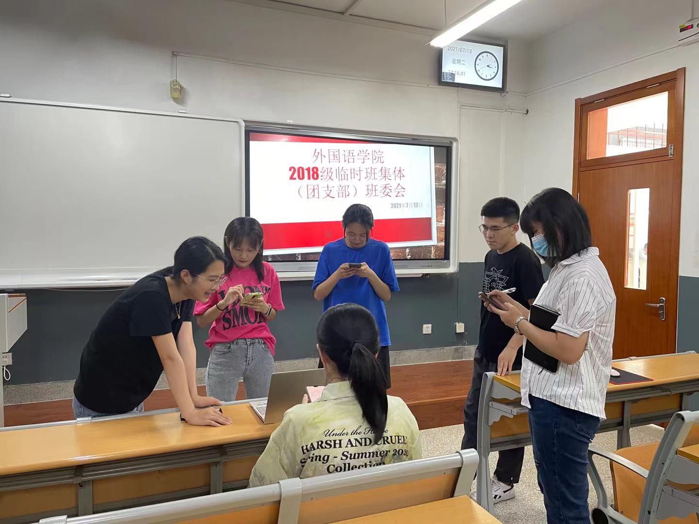 盛暑已至,蝉鸣不息。为更好地为暑期留校学习的同学提供稳定的学习生活环境,威尼斯7798cc成立2018级暑期临时班集体(团支部),将一百五十余名留校学生分为第一第二支部,选派了十名班委承担服务管理工作。2021年7月13日下午,班委在公教楼104展开了热烈讨论。