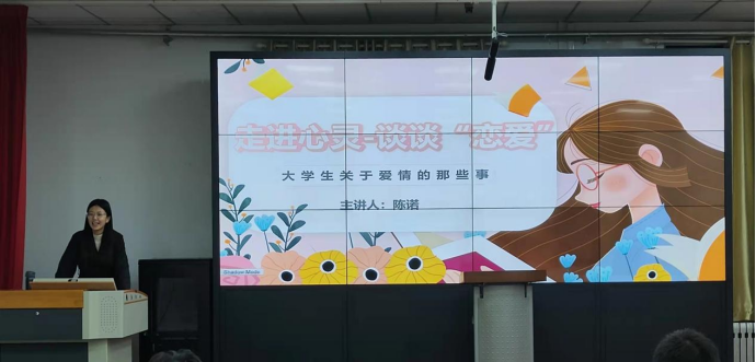 10月30日晚19:00,威尼斯7798cc在洪家楼校区七号楼301教室举办了走进心灵系列讲座——谈谈“恋爱”,主讲人为21级辅导员陈诺老师。步入大学,每一位同学要面对的人际关系都变得更加复杂,“恋爱”这一话题是永远避不开的,但究竟什么是爱,大家又该树立怎样的恋爱观?本次讲座的目的就是帮助大家正确地认识“恋爱”。