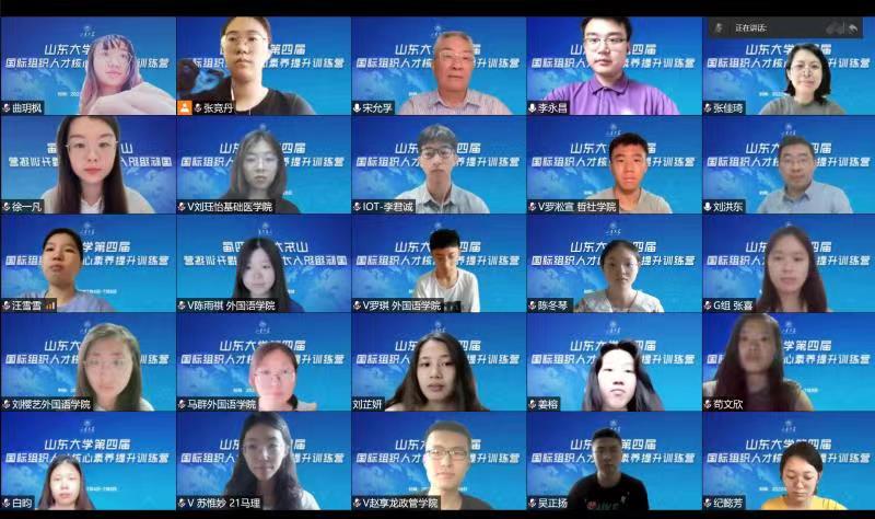 张佳琦在讲话中介绍了我校近几年国际组织人才培养和推送工作的进展,表示我校将继续围绕学生全球胜任力的培养进行积极探索。刘洪东简要回顾了往届训练营的情况,介绍了本届训练营的课程安排,并对同学们提出了期许。宋允孚对国际组织人才培养的山大模式给予了高度肯定,并勉励同学们厚植家国情怀,逐梦国际组织。李君诚在发言中表示将继续与学校携手努力,打造训练营的特色品牌。参训学员代表徐一凡代表全体学生发言,她结合在国外交流经历,表示要响应习近平总书记号召,珍惜学习机会,努力成为高层次复合型国际化人才。最后,全体师生线上合影留念。