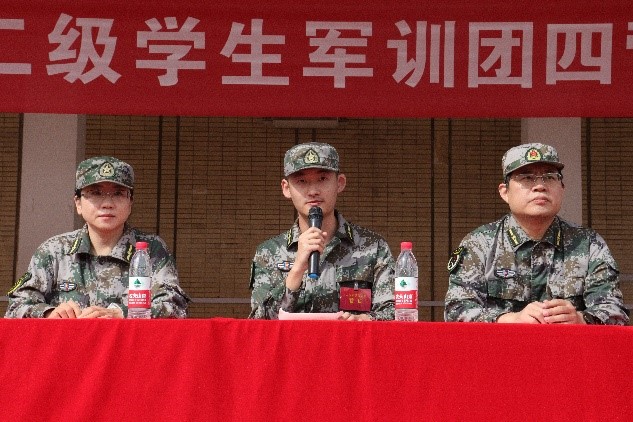 张燃旭代表执训教官庄严承诺,将牢记教官职责,严格要求自己,为学生做好表率,树立榜样,以高度的责任感和饱满的热情投入军训工作。