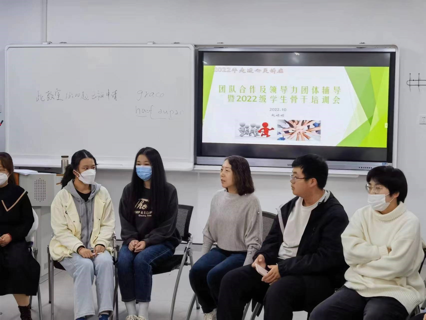组织骨干培训,提升学生干部工作能力。学院组织开展三场“团队合作及领导力团体辅导”活动,在辅导员赵婧婧的主持下,各班班委有序完成了“破冰”“角色认知”“单双向沟通”三大板块内容,在游戏中获得了关于领导力的启发,在交流中认清了作为班干部的责任与担当。此外,全体班委参与了学院“朋辈同行,助人自助”主题讲座,此次活动的开展有效提升了学生干部的心理支持意识和能力,对于促进学生干部识别、关注、疏导、帮助周围同学解决心理困惑具有指导意义。