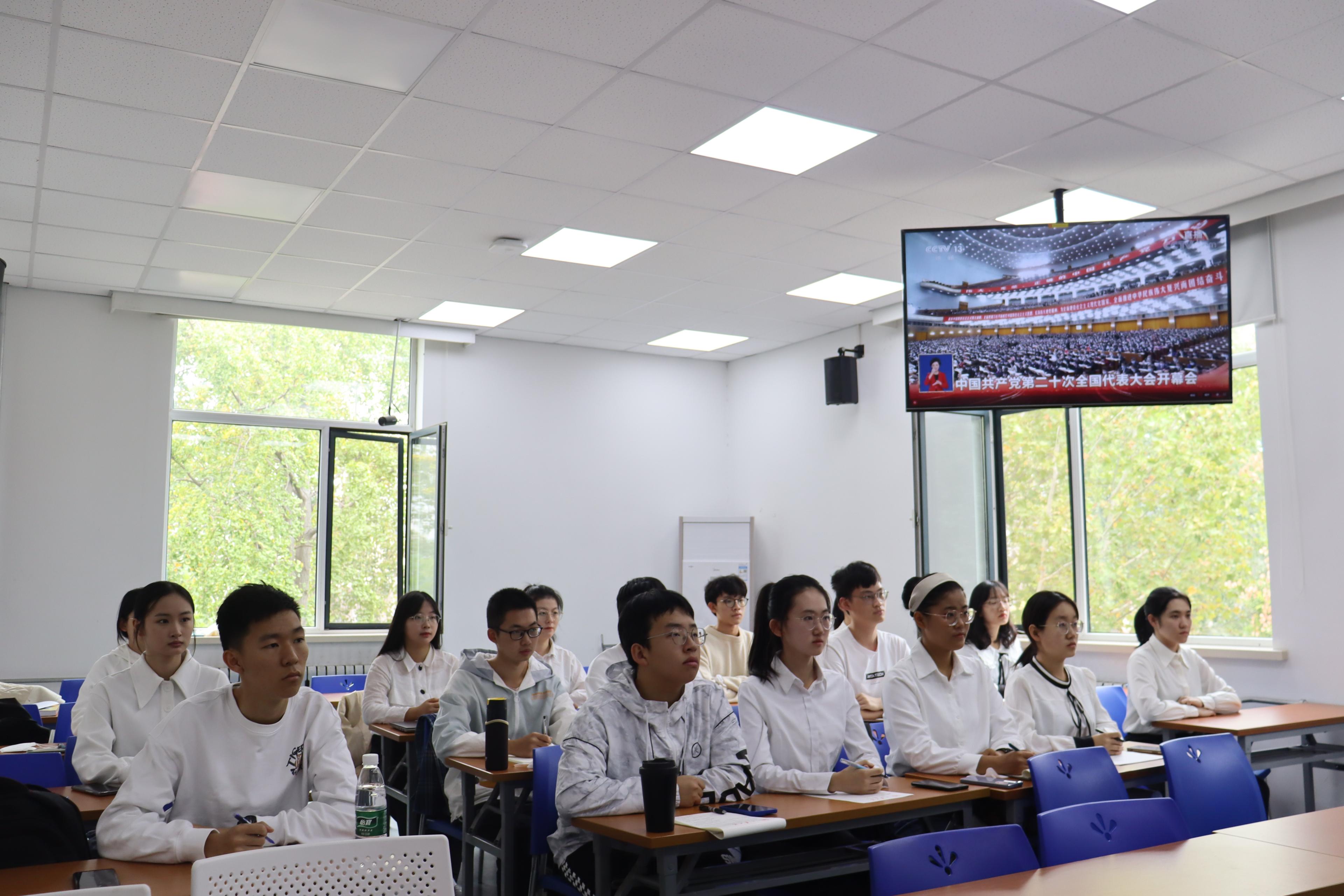 学习党的二十大精神,加强思想引领。学院组织2022级法语国际组织班集体收看党的二十大开幕会直播,学生在观看完此次开幕会后,深入思考肩上的时代使命与责任担当,积极交流讨论,抒发自己的拳拳爱国热情。学院举办以“学习党的二十大精神,争做新时代好青年”为主题的新生适应性讲座,学院党委副书记魏鲁鸿以党的二十大胜利闭幕为背景,结合党的二十大的时事要点,号召学生听党话、跟党走,不断加强理论学习与社会实践。