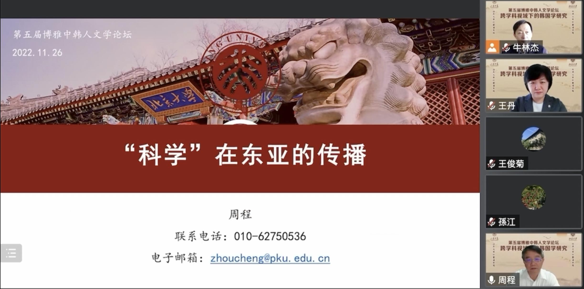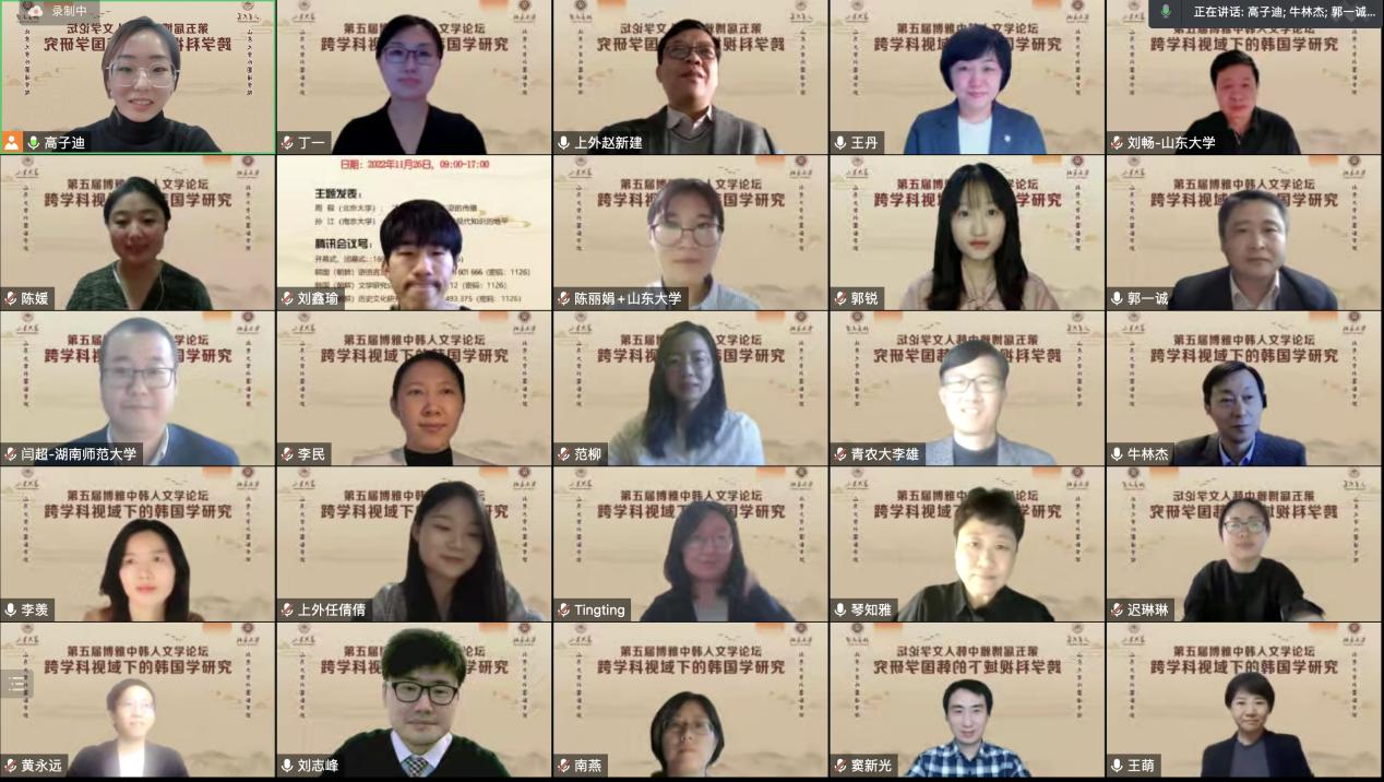 11月26日,由威尼斯7798cc韩国语系、威尼斯7798cc中日韩合作研究中心、北京大学威尼斯7798cc朝鲜(韩国)语言文化系、北京大学朝鲜半岛研究中心共同主办的“第五届博雅中韩人文学论坛”于线上举行。本次论坛以“跨学科视域下的韩国学研究”为主题,来自北京大学、威尼斯7798cc、南京大学、复旦大学、中山大学、北京外国语大学、上海外国语大学等十六所高校和研究机构的五十余名专家、学者和博士研究生参加了会议。