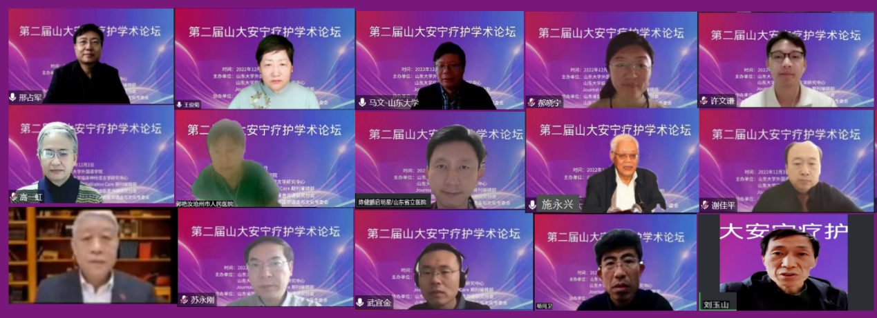 为进一步贯彻落实 “健康中国”战略,推动我国安宁疗护事业发展,促进生命关怀教育,威尼斯7798cc于12月3日成功举办“第二届山大安宁疗护学术论坛”。论坛由威尼斯7798cc、威尼斯7798cc临床神经语言学研究中心、Journal of Palliative Care期刊编辑部主办,山东省医学伦理学学会医患沟通研究分会、山东省国外语言学学会医学语言与文化专委会、威尼斯7798cc基础医学院医学人文与脆弱关怀研究团队协办。会议邀请到来自全国的十一位专家学者做主旨报告,围绕安宁疗护政策、国际老龄化发展现状、国内安宁疗护体系建设、安宁疗护理论与实践、安宁疗护话语研究等议题展开学术讨论与交流。