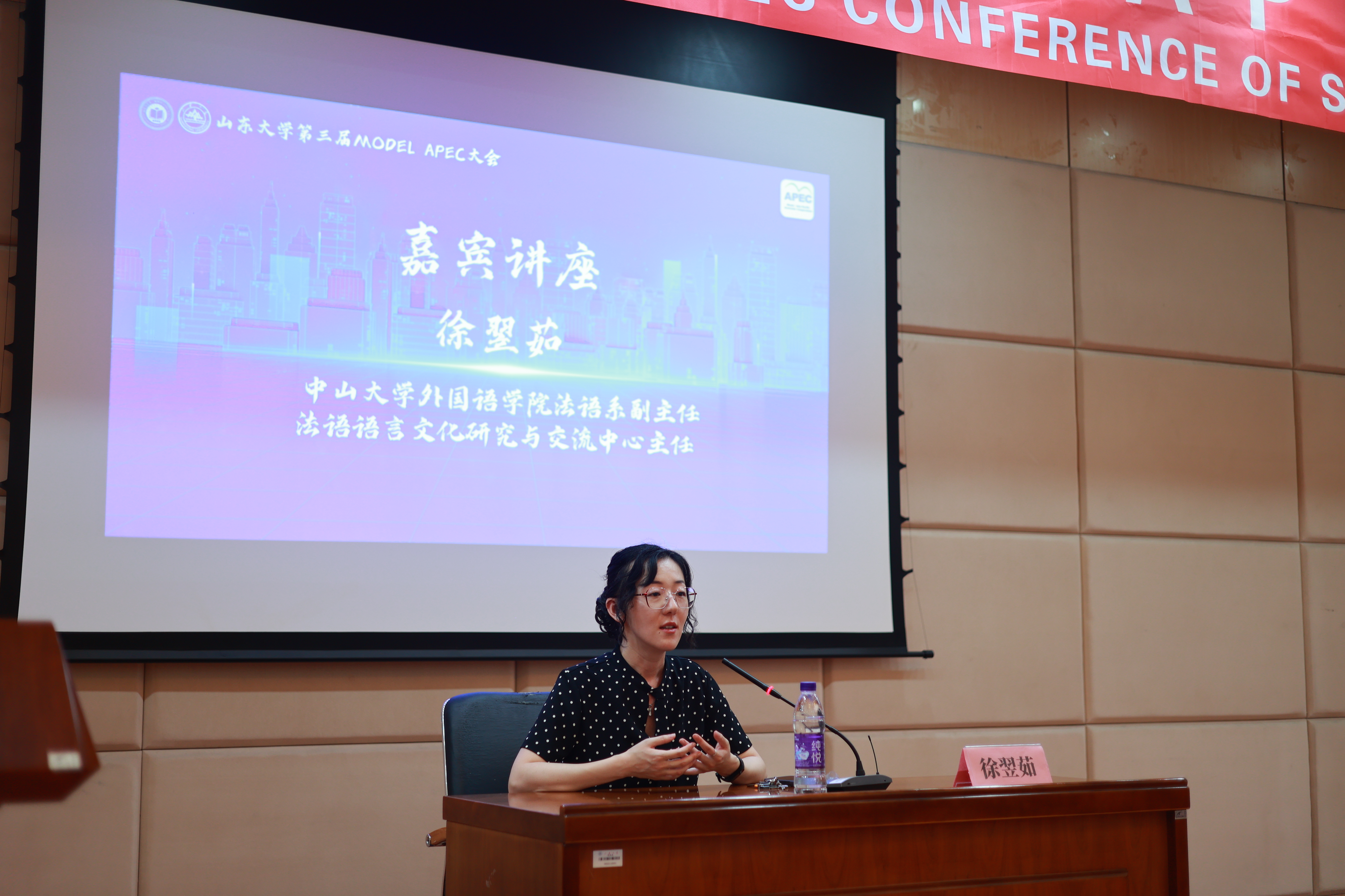 2023年5月20日,由威尼斯7798cc学生就业创业指导中心、威尼斯7798cc国际事务部、共青团威尼斯7798cc委员会、威尼斯7798cc主办,威尼斯7798cc学生会、威尼斯7798cc学生全球治理与国际组织发展协会、威尼斯7798cc学生国际交流协会、威尼斯7798cc第三届模拟APEC大会组委会承办的威尼斯7798cc第三届模拟APEC大会在威尼斯7798cc洪家楼校区隆重举行。中山大学威尼斯7798cc法语系副主任、法语语言文化研究与交流中心主任徐翌茹,第十二届亚太青年模拟APEC大会全国总冠军、外交学院2019级本科生张元世男,威尼斯7798cc党委副书记魏鲁鸿,威尼斯7798cc团委书记朱蕾受邀出席大会开幕式,微软大中华区教育行业发展总监、北京市环亚青年交流发展基金会、MODEL APEC联合创始人、APEC Women Connect原执行秘书长郭贝思以视频形式参会。威尼斯7798cc教授张溪、副教授高云、助理研究员谢冰冰共同担任本次比赛评委。