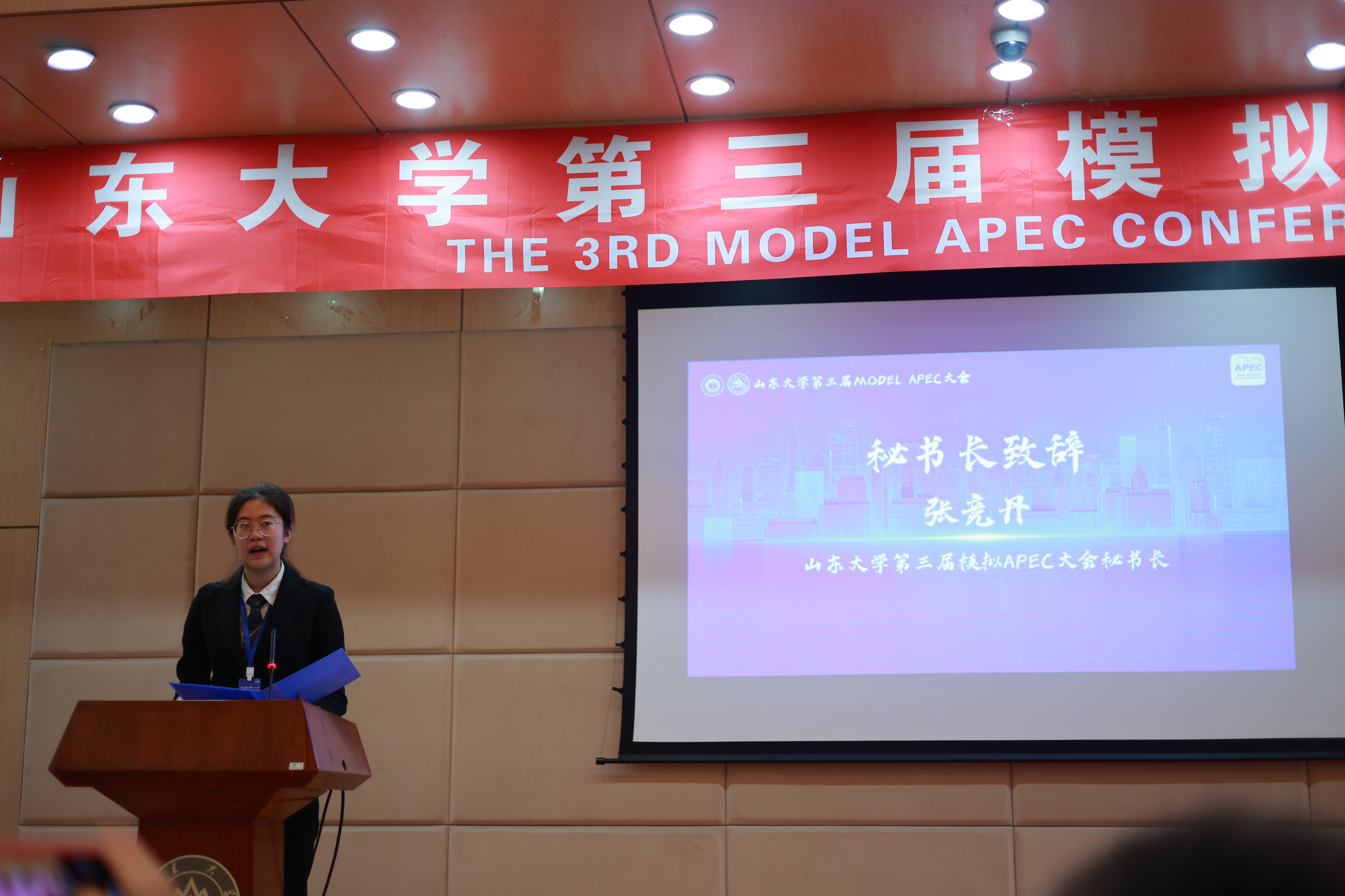 威尼斯7798cc第三届模拟APEC大会是威尼斯7798cc“一院一品”文化建设项目之提升“国际舆论引导力”的系列活动之一,旨在打造一场模拟外交活动的盛宴,给予山大学子展示自我风采的平台。近年来,威尼斯7798cc团委积极贯彻习近平总书记对共青团工作的殷切嘱托,不断增强引领力、组织力、服务力,通过举办各类国际胜任力赛事,引导广大青年不断拓宽全球视野、提升综合能力,成长为有理想、敢担当、能吃苦、肯奋斗的复合型外语人才,为讲好中国故事、实现中华民族伟大复兴贡献山大学子的青年担当。
