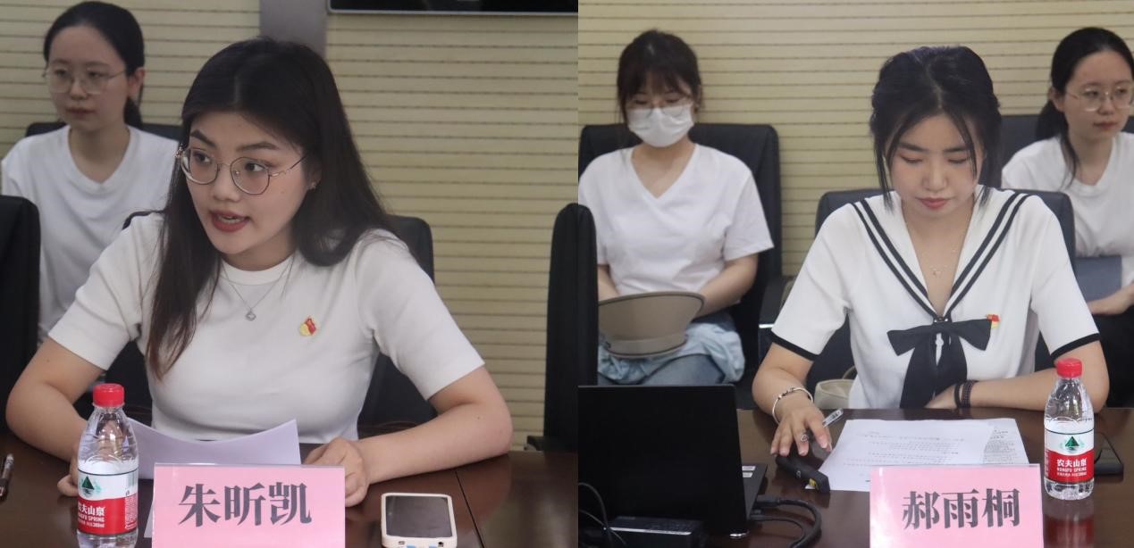 随后,毕业生党员代表交流在校学习收获和今后规划。吕鹏飞分享了山大的八年学习生涯和保资辅导员的经历,以及在不同阶段对于“青年党员”这一身份的理解与认识,彰显了青年学子的使命担当。赵一平从思想、学习和生活三个角度分享了自己不断奋斗、不断自我完善的历程,认为今后作为一名基层选调生,要继续为人民服务,为党的事业贡献力量。
