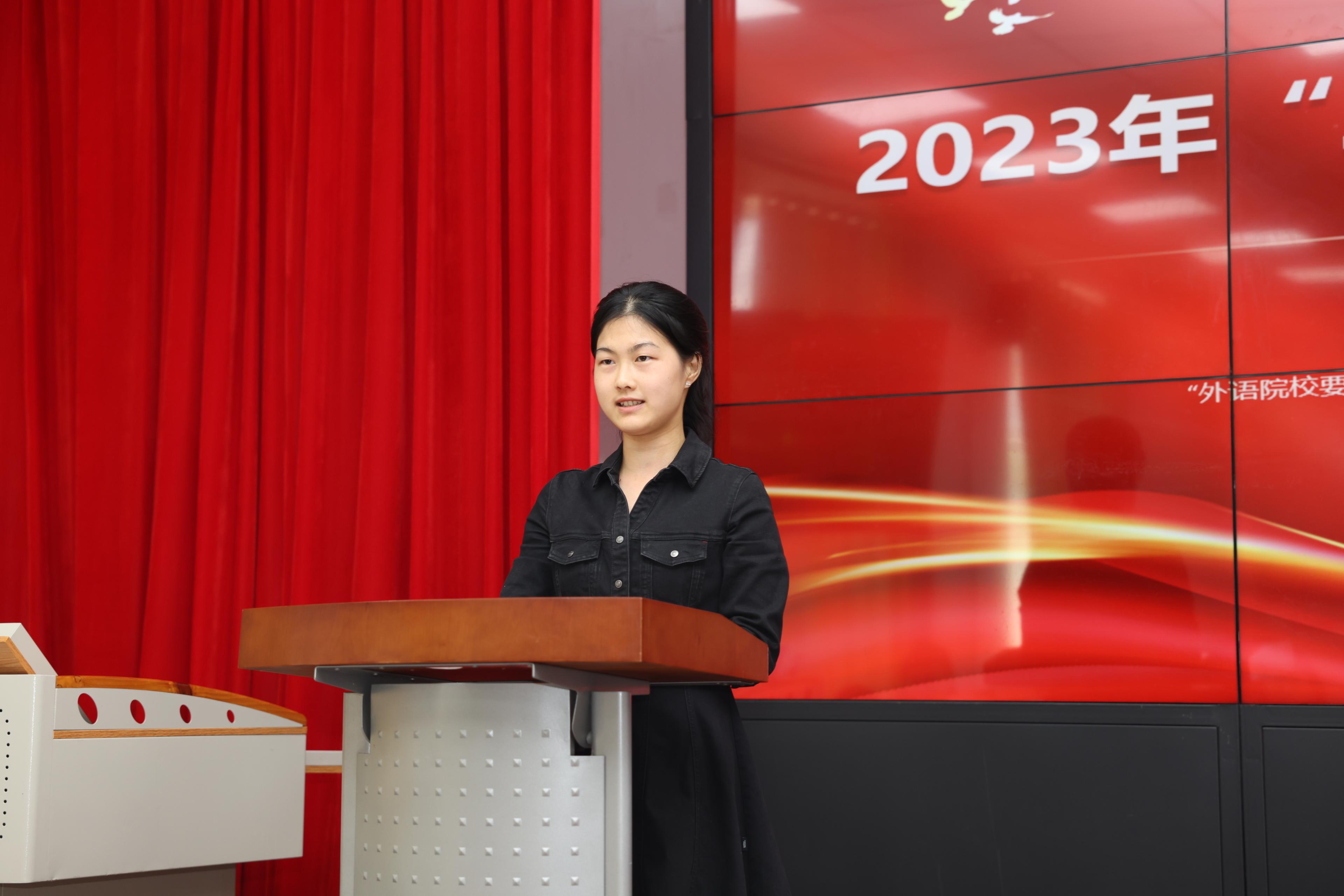 2023年“三有”社会实践队代表聂冰清在发言时提出,社会实践并不是遥不可及的事情,它蕴含在我们生活中的方方面面,同学们应通过每学期的社会实践,踏出校园、融入社会,发现当前社会发展中存在的问题,承担起当代青年的社会责任。