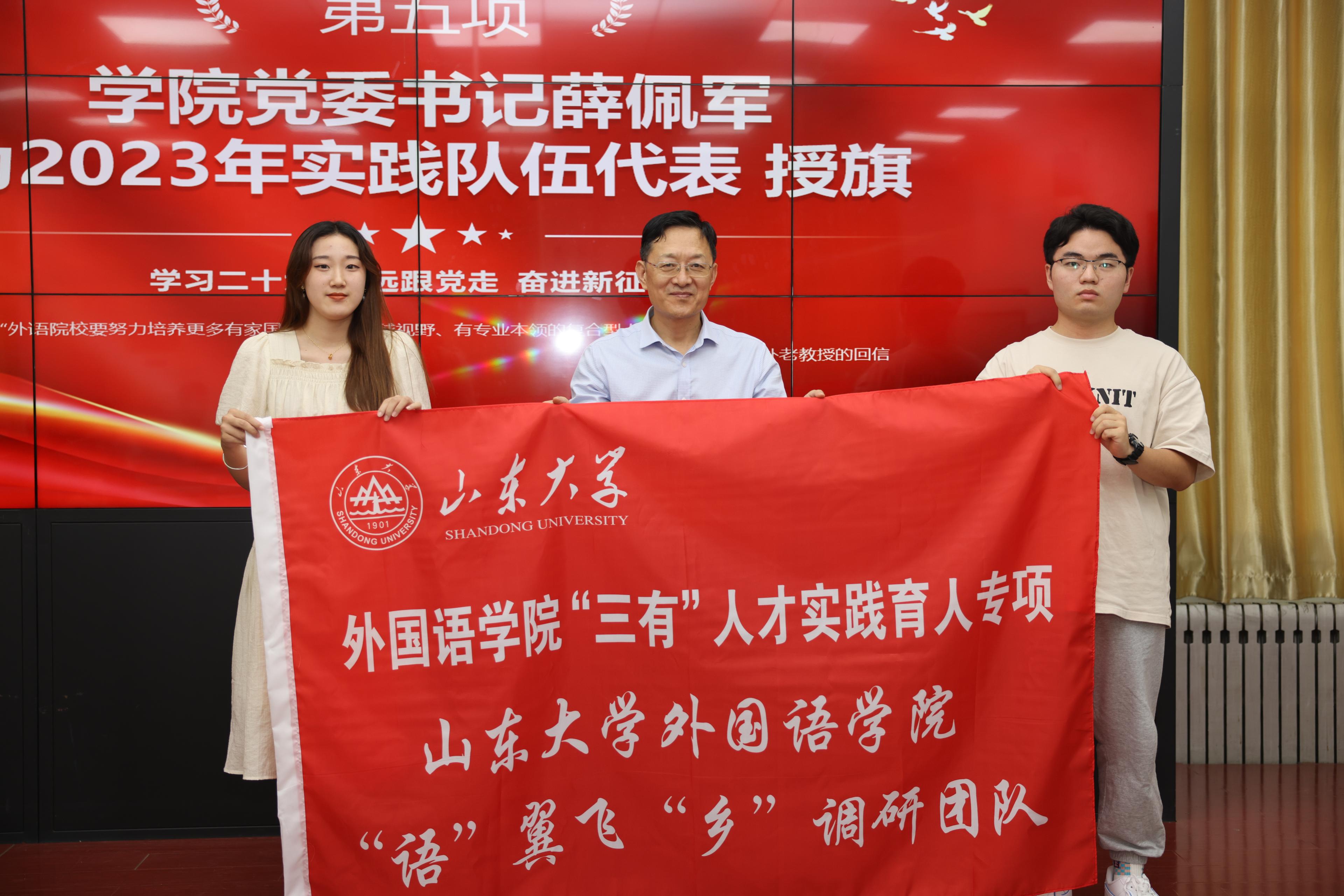 最后,薛佩军为6支社会实践代表团队一一授旗,鼓励同学们把握当下,在社会实践中成长为有理想、敢担当、能吃苦、肯奋斗的新时代好青年。