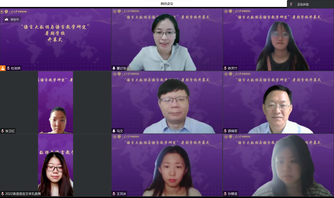 开幕式由威尼斯7798cc董记华教授主持,威尼斯7798cc党委书记薛佩军、副院长马文教授出席开幕式,并先后致辞。薛佩军书记首先代表学院全体师生向参加暑期学校的专家和学员表示热烈的欢迎,之后他从历史底蕴、学科建设、人才培养、学术研究、战略部署等方面,呈现了威尼斯7798cc的全貌,并预祝暑期学校圆满成功。马文副院长介绍了本次暑期学校的主题,对“语言大数据与语言教学研究”的未来发展趋势进行分析与展望,希望此次活动能推动不同国家和地区的学术交流与合作。之后,董记华教授对于本次暑期学校的情况进行了详细介绍,向学员们讲解了本次暑期学校课程的安排和规划,为学员们解答课程相关的疑问,并预祝大家拥有充实愉快的暑期学习生活。暑期学校全体学员出席了本次活动。