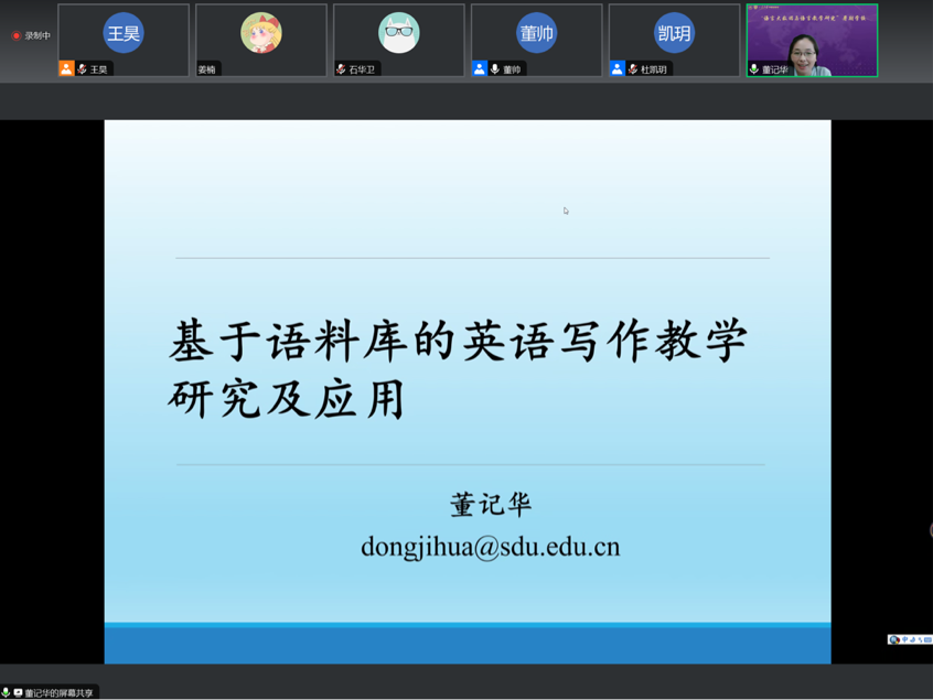 7月17日,威尼斯7798cc董记华教授为学员们带来了“基于语料库的英语写作教学研究及应用讲座”,在介绍语料库基本特征和使用优势的基础上,探讨语料库在英语写作教学中的常见应用范式,并结合最新实证研究探讨将语料库资源和工具应用于英语写作教学的方法,为学员在英语写作教学和研究提供了参考和借鉴。