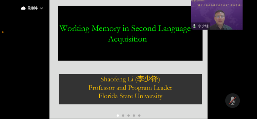 7月10日至7月11日,佛罗里达州立大学Shaofeng Li教授进行了“One Size Does Not Fit All: Individual Differences in Second Language Teaching and Learning”和“Working Memory in Second Language Acquisition: A Systematic Review”主题的授课,为大家阐释了个体差异因素在解释学习机制和预测学习结果等方面的重要性,以及讨论了工作记忆的理论、结构与测量,最后指出问题,提出解决措施,并指明了该领域未来的发展方向。