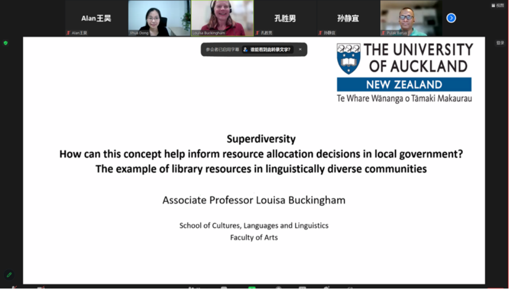 7月12日,奥克兰大学Louisa Buckingham副教授为大家带来“Allocating limited resources to linguistically diverse communities: how can the superdiversity concept help?”为主题的讲座,分享了自己在语言多样性领域的相关研究,使学员了解了语言数据如何助力区域语言多样性研究与公共资源和服务分配,从社会语言学视角感受到了语言数据资源的重要性。讲座结束后,学员们就社会语言学中的语言多样性议题踊跃提问,进行了热烈讨论。