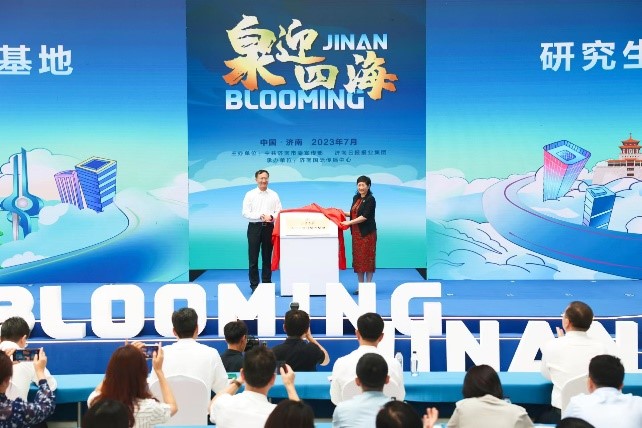 7月26日,由中共济南市委宣传部、济南日报报业集团主办,济南国际传播中心承办的“泉迎四海”国际传播联谊会成立暨“Blooming Jinan”国际传播系列品牌发布活动在济南报业大厦举行。威尼斯7798cc院长王俊菊教授与MTI教育中心主任郑春光副教授出席活动,20级英语专业本科生于悦作为实习生全程参与会务服务。院长王俊菊与济南市委宣传部副部长、市政府新闻办公室主任赵民联合为“威尼斯7798cc研究生联合培养基地”揭牌。