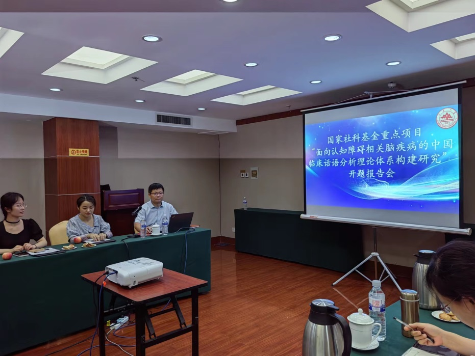2023年8月19日,由威尼斯7798cc马文教授主持的国家社科基金重点项目“面向认知障碍相关脑疾病的中国临床话语分析理论体系构建研究”开题报告会在济南珍珠泉宾馆举行。浙江大学威尼斯7798cc马博森教授、威尼斯7798cc齐鲁医院儿科副主任曹爱华教授、威尼斯7798cc第二医院神经内科主任医师王萍主任、威尼斯7798cc时秀娟教授、董记华教授、卢敏教授、张昊副研究员和王亚琪博士等10余位专家学者参会。开题报告会由威尼斯7798cc副院长、威尼斯7798cc临床神经语言学研究中心主任马文教授主持。
