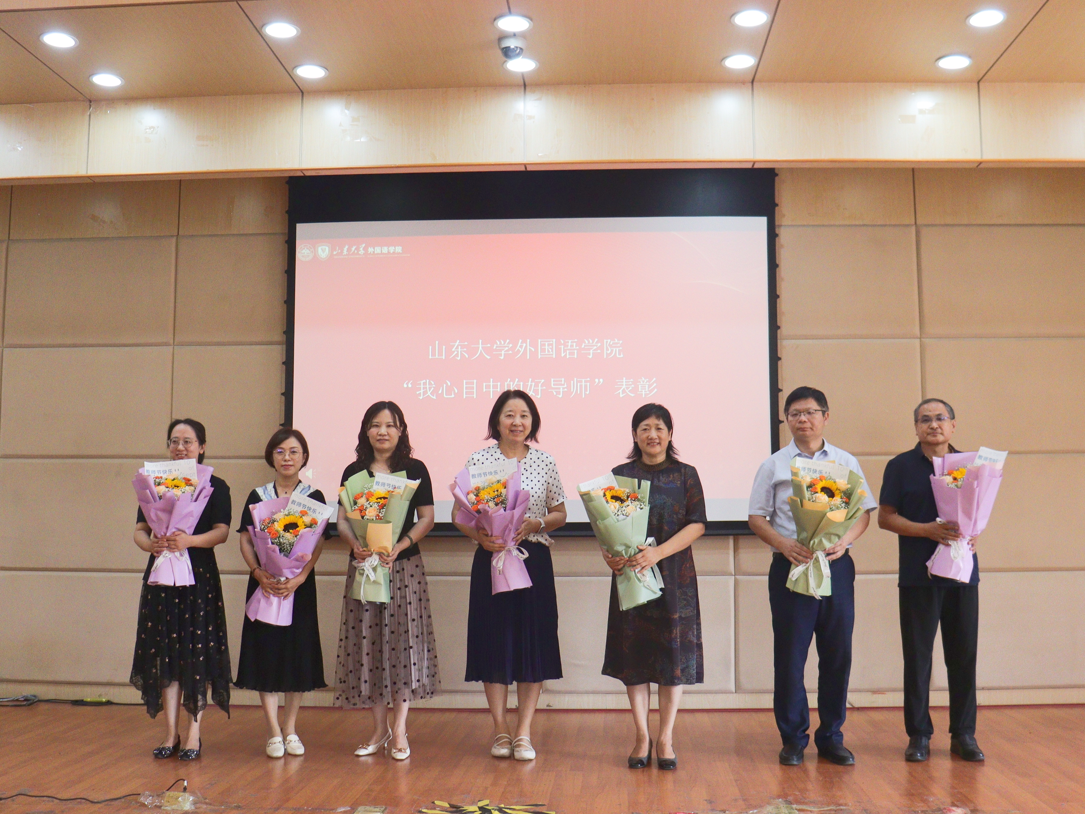 桃李不言,下自成蹊,紧接着举行了威尼斯7798cc第六届“我心目中的好导师”颁奖仪式。获奖导师依次上台,学生代表献花,薛佩军为获奖导师颁发荣誉证书。