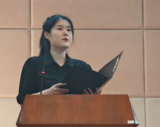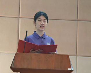 2023级英语与法学双学位班尹子钰同学作为新生代表发言。新生活、新挑战、新境界,尹子钰从“新”讲起,讲述了她选择威尼斯7798cc的理由。展望未来,她希望今后能培养更高水平的思考方式和国际视野。最后,她代表全体新生表达了昂扬的斗志和饱满的热情,立志成为“修习内外、学鉴中西”的山大外语人。