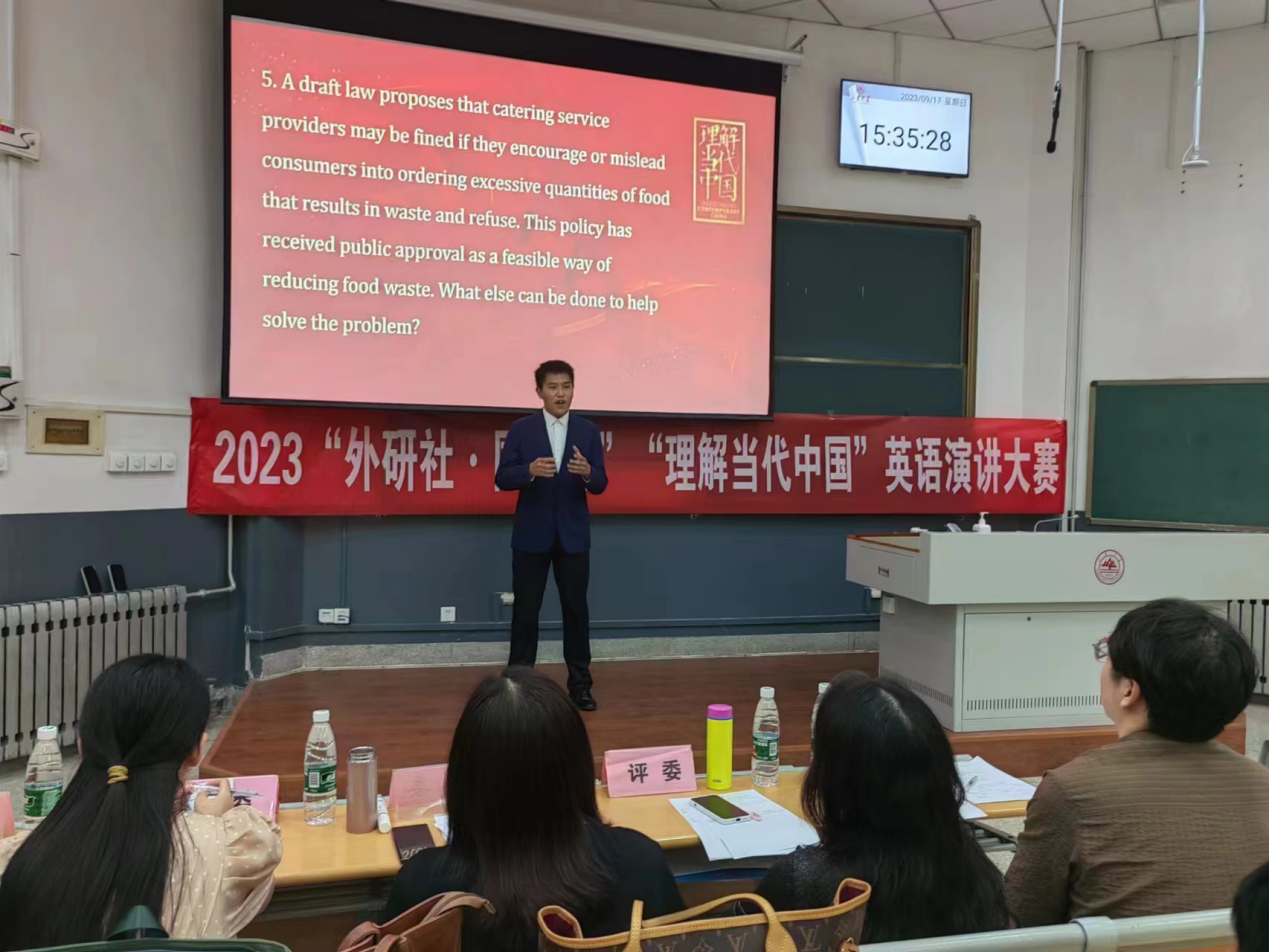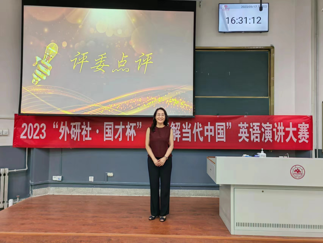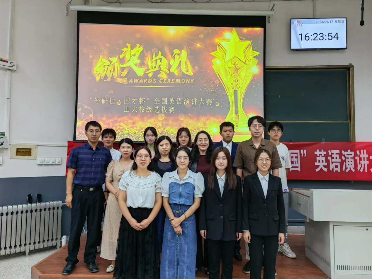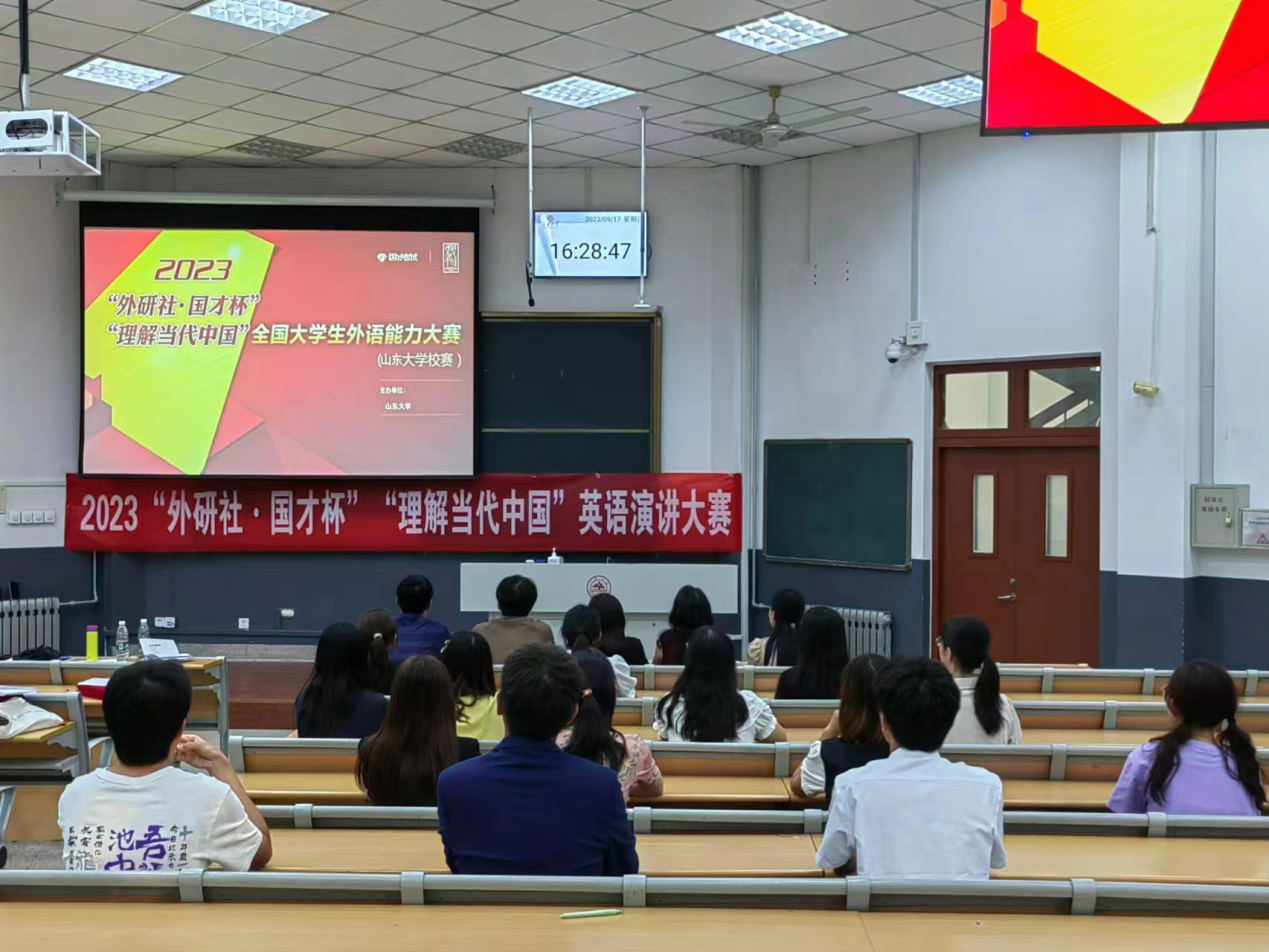 2023年9月17日下午,“外研社·国才杯”“理解当代中国”全国大学生外语能力大赛英语演讲比赛之威尼斯7798cc校选赛在洪家楼校区如期举行。威尼斯7798cc外语应用与全球胜任力提升创新平台的高云老师、闫秋燕老师、林殿芳老师、姜仁风老师及特邀威尼斯7798cc访问学者商培培老师出席了此次比赛,并担任大赛评委。
