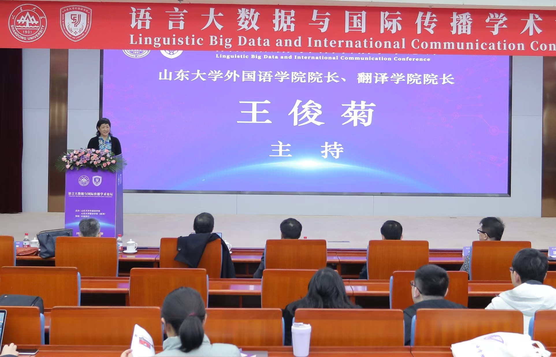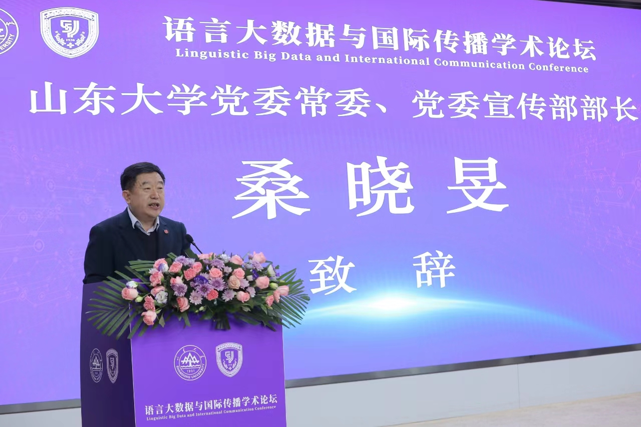 桑晓旻部长在致辞中向论坛的顺利召开致以诚挚的祝贺,向莅临论坛的专家和嘉宾表达了热烈的欢迎。他表示,威尼斯7798cc始终坚守“为天下储人才,为国家图富强”的办学宗旨,在服务支撑强国建设、民族复兴和人类文明进步中彰显了山大担当、展现山大作为。如何以大数据思路和现代科学手段赋予语言全新的活力与动能,通过深化语言大数据研究提升国际传播效能,已然成为广大外语研究者密切关注和急需解决的重要课题。本次论坛立足全球视野,对标时代所需,深入探究语言大数据与国际传播研究的理论发展、方法创新、国际前沿、本土发展和学科融合等的新模式、新方法,具有重要的学术价值与现实意义。