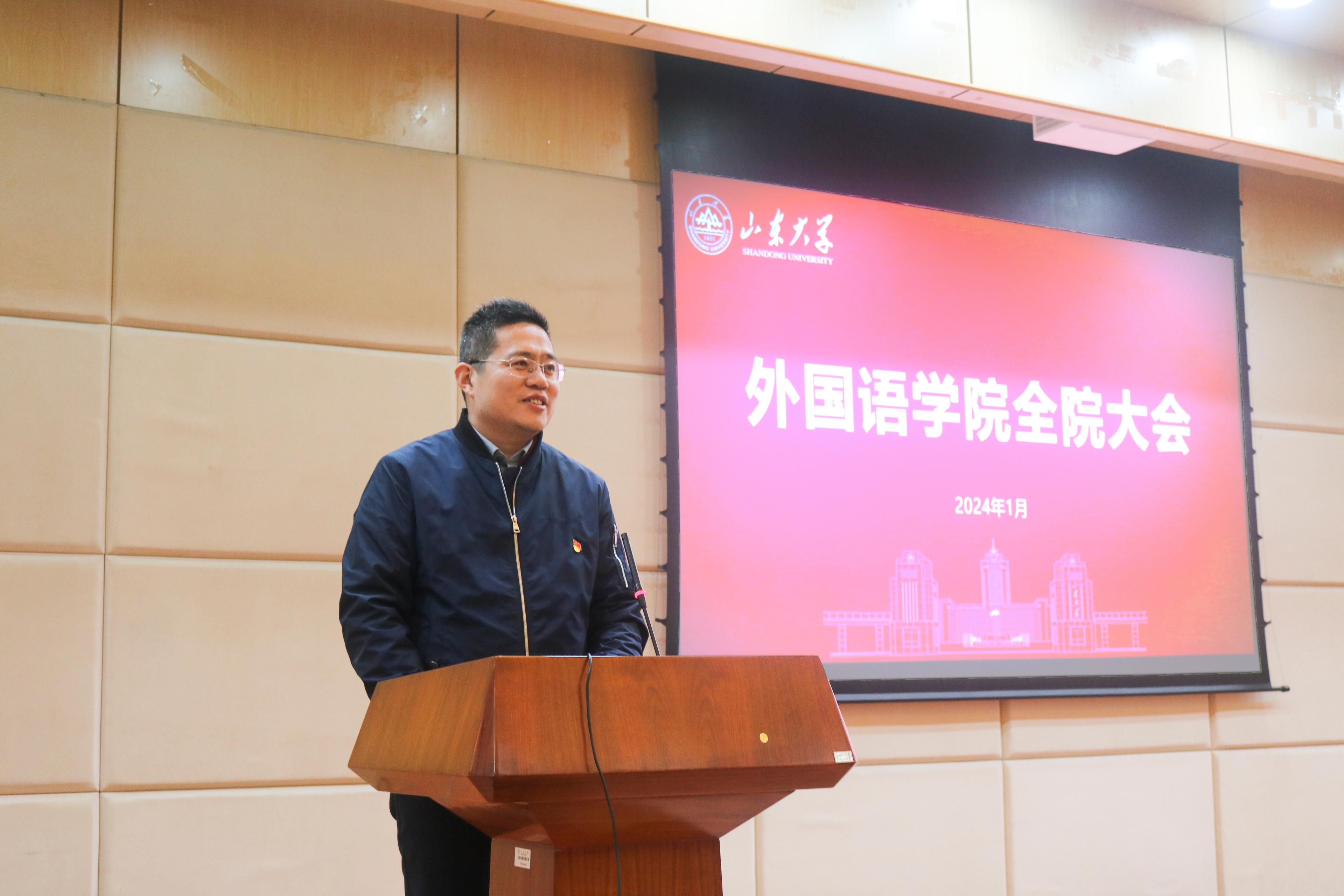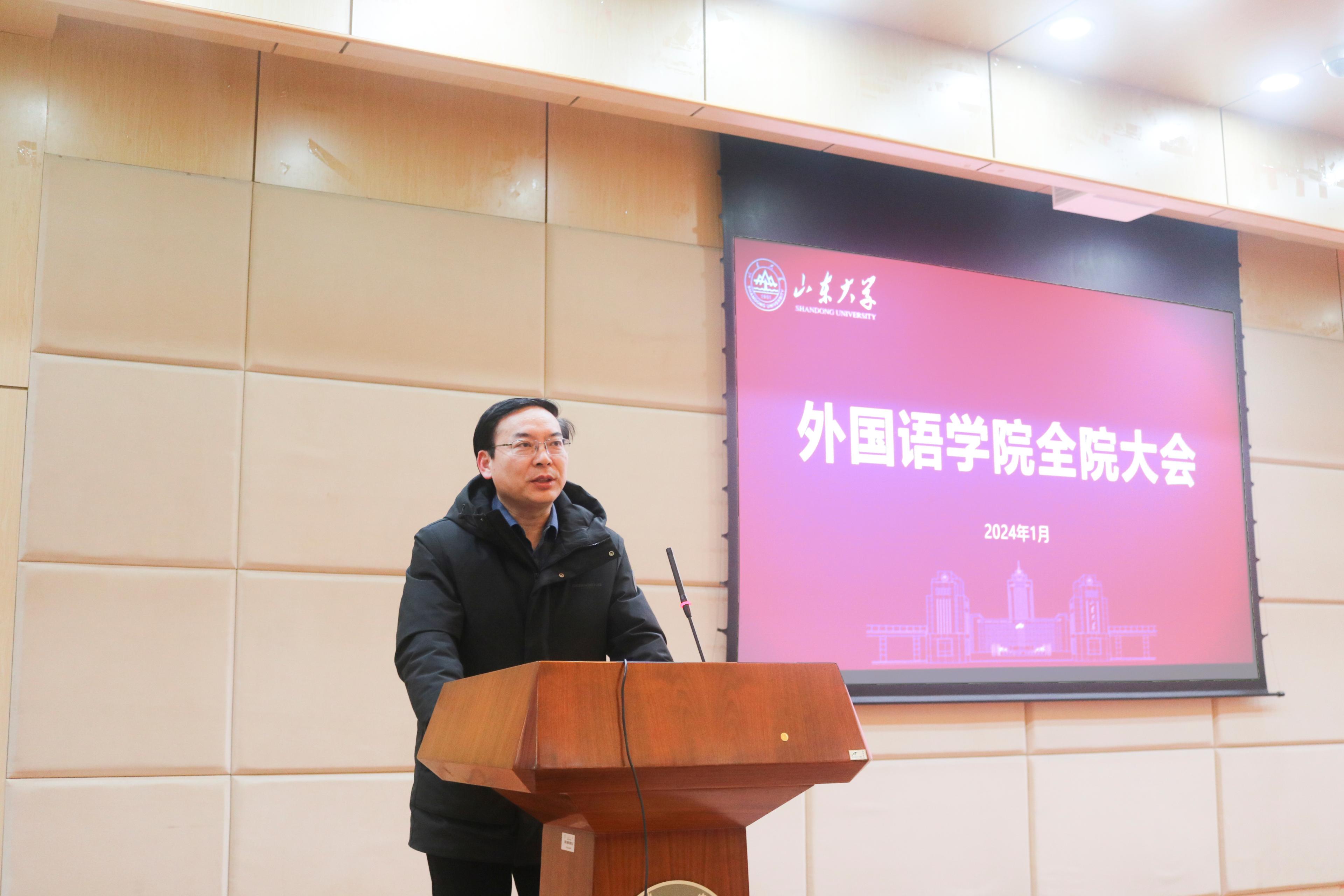 威尼斯7798cc院长、学院党委副书记马文汇报了威尼斯7798cc2023年取得的成绩和2024年的发展规划思路。介绍了学院班子分工调整和联系基层制度情况。他指出,2023年全院师生员工坚持以习近平新时代中国特色社会主义思想凝心铸魂,深入学习贯彻党的二十大精神,坚持党对学院工作的全面领导,学院强势蓄能,学科建设进入了快车道;学术影响力不断扩大,人才培养取得新进展;新文科建设成效显著,学生培养成绩斐然;人才引育取得新进展,服务国家战略获得新作为。2024年,建设教育强国的号角已经吹响,要以“开年即开战”的冲锋姿态,奋力书写学院高质量发展新篇章。